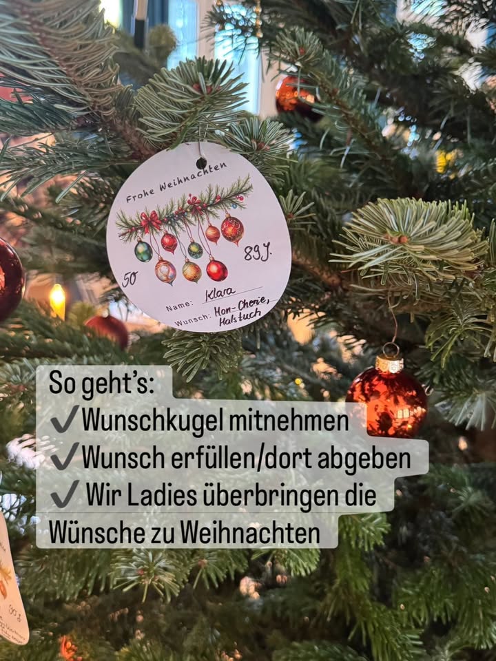 Wünsche werden wahr 🎁 In diesem Jahr beteiligen wir uns bei einer besonderen Aktion, koordiniert vom Seniorenbeauftragten der Stadt Weiden @peterklein_landesseniorenrat 🌲 dabei sind über 120 Wünsche von Seniorinnen und Senioren aus Pflege-/Altenheimen in Weiden zusammengetragen worden. ❤️ liebevolle haben wir die Wünsche auf Kugeln geschrieben und im Maria-Seltmann Haus an einen festlichen Baum gehängt 🌲